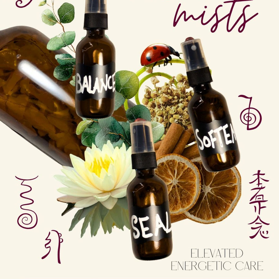 Reiki-infused cleansing sprays to refresh, soften, and protect the aura. Lightly mist around the body in a counterclockwise motion to clear lingering energy and restore balance. Complements mindfulness practices and Emotional Freedom Techniques.